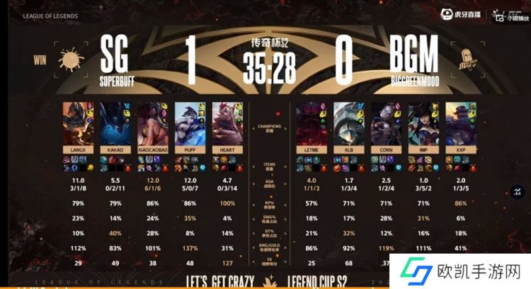 SG:上单Langx、打野Kakao、中单xiaocaobao、下路Puff、辅助Heart