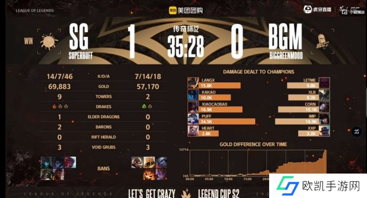 【22:35】中路BGM想开Puff艾希被他规避,回头艾希一箭命中Letme奥恩,这次虽然队友想救,但是Langx兰博给大配合进场的xiaocaobao阿卡丽成功切死后排的Imp女警!这波SG打出0换3之后回头拿下大龙!经济差4K!
