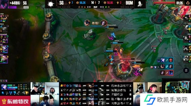 【34:38】中路团战BGM想开没闪的Langx兰博但是没人跟得上,反手xiaocaobao阿卡丽绕后TP配合Heart洛舍命开团再次秒掉了Imp女警!没有了女警BGM没有输出点了!最终SG追上高地,打出1换5团灭BGM,拿下第一局比赛!