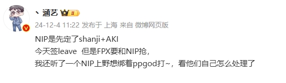 直播吧12月04日讯 涵艺爆料目前的LPL战队NIP转会情况: