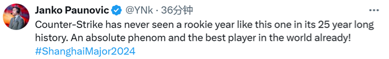 YNk:在CS 25年的历史中,从未出现过像今年这样的新秀赛季。他(donk)绝对是天才选手,并且已经是世界上最好的选手了!