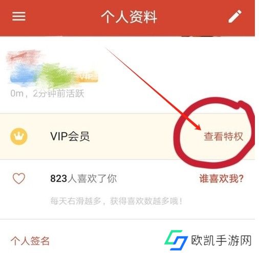 3、然后在个人页面点击vip会员右侧的“查看特权”。