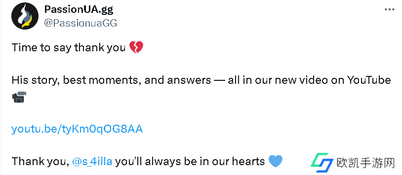 Passion UA官推:是时候说谢谢了。感谢你,s-chilla,你将永远在我们心中。
