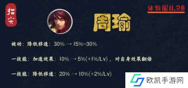 调整前10%加速,自己和队友都能享受到,调整后队友变成了5%-10%,而周瑜自己则是10%-20%,是对前期减速效果削弱进行的补偿,跑图速度会比之前更快,当然了,也因为两个减速的削弱,让周瑜对于凝冰之息的依赖值更高了。