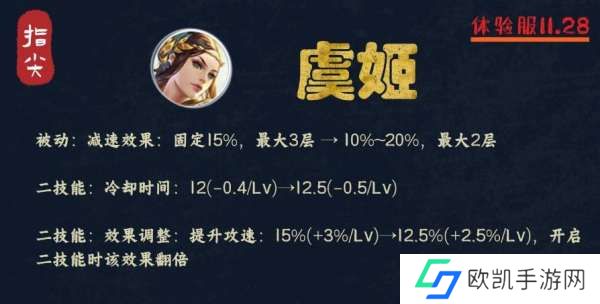 比如,原本是50%减速的效果,调整后变成了30%或者25%的基础减速,从固定50%变成了成长减速,前期全部都削弱,降低了减速的效果,后期保持一致,甚至还比原本更高一点。