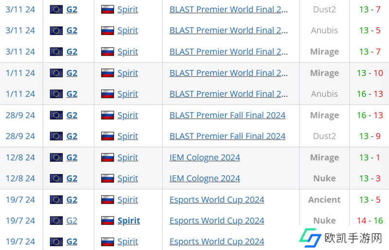 在欧洲RMR B组比赛1-2不敌G2后,Spirit已经连续6场比赛不敌G2,而在过去15场交手中,Spirit仅仅击败过G2两次。