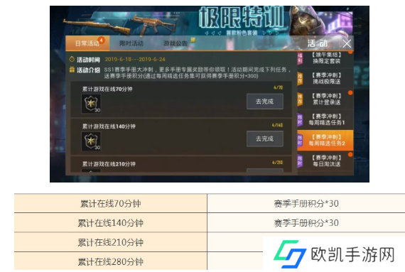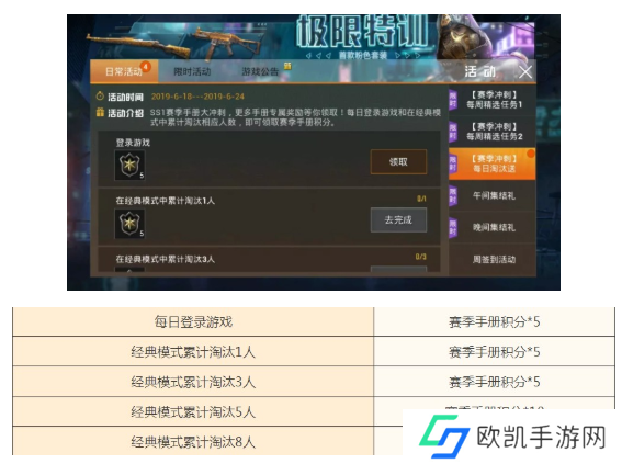 6月18日0:00至6月24日23:59,每日登录游戏和在经典模式中累计淘汰相应人数,即可领取赛季手册积分*40,七天总计可以获得赛季积分*280。