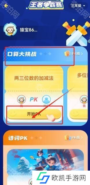 4、然后选择一种你想要进行的口算比赛点击“开始pk”。