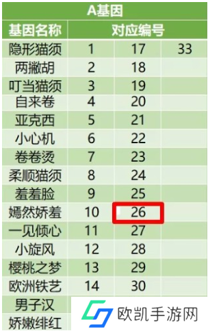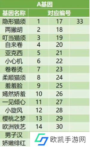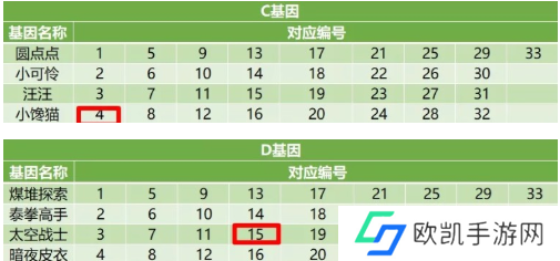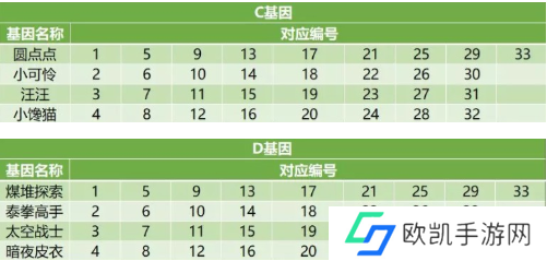 本次共有37个基因进入侏罗纪套装猫基因配方备选池中,分别对应不同的编号,并被分入A、B、C、D四个基因池。