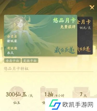 1、首先,月卡有三大种,悠品,礼遇和黑金,然后同类型的区最高,下面配图说明一下。注意了,悠品是终身免费,但是探寻令只送一个,后面没有了!