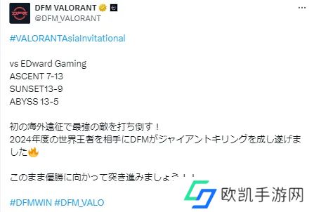 源能亚洲邀请赛瑞士轮DFM以2-1的比分战胜EDG,赛后DFM官推发文发表胜利喜悦,大意如下: