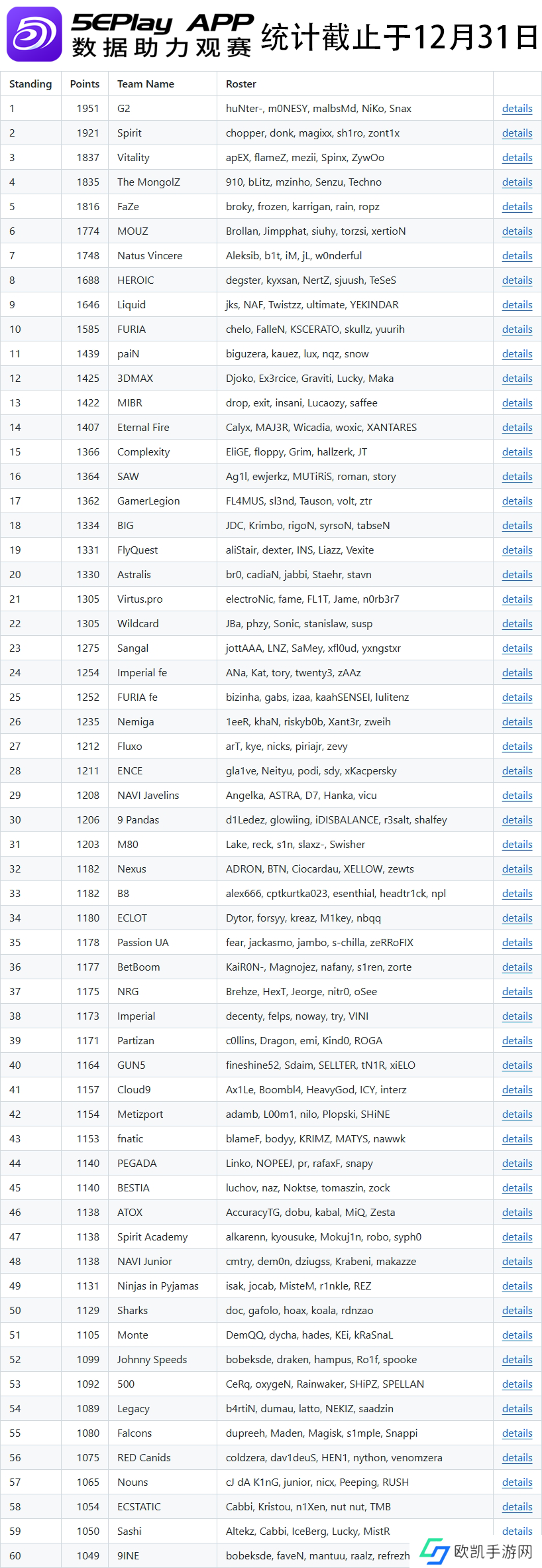 昨日V社更新了旗下CS世界排名,这一世界排名即是2024年各队伍的最终积分,也是新一年每支队伍的起始积分。由于近期处于冬季转会期,部分队伍的排名将会在之后迎来较大变动。