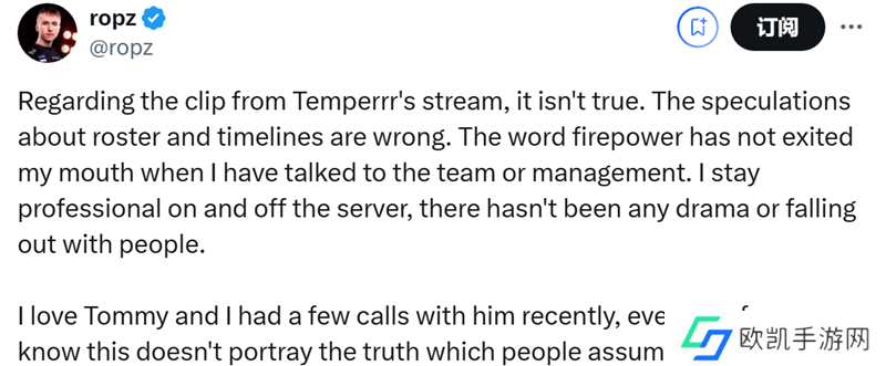 不过ropz在今天的社交平台上否认了相关言论。