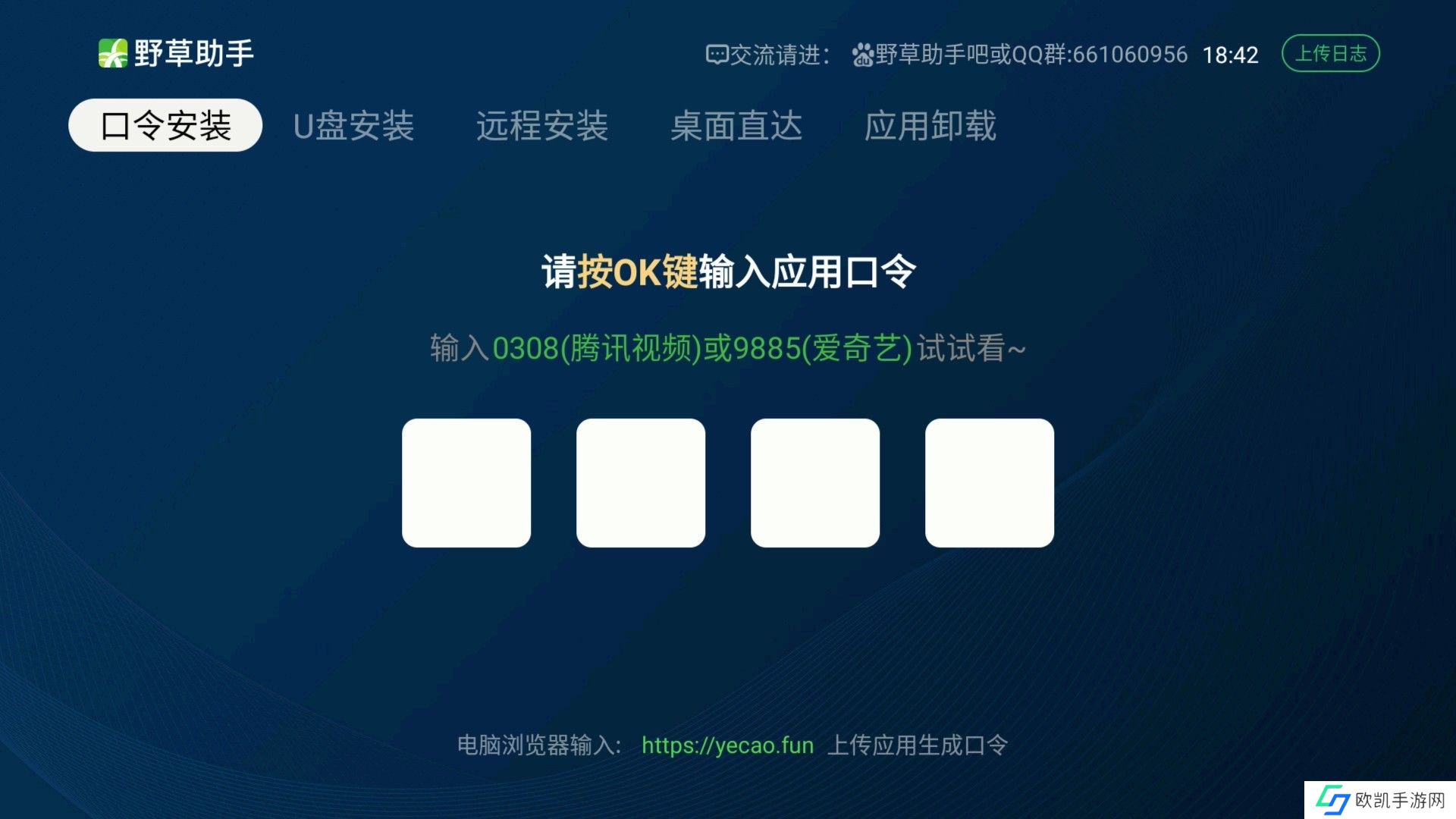 1、智能电视端通过输入4位软件口令进行软件安装