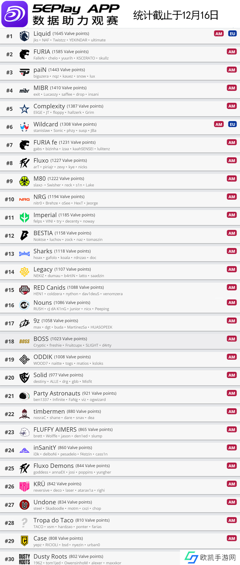 欧洲区前30名如下:
