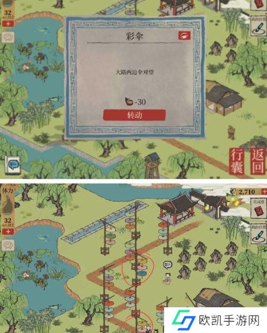 第一个——把伞转过来。点击旋转伞解锁雾气、睡莲;第二名——石碑雾。点击锁雾片,送料解锁雾,获得睡莲;船闸雾碑位置如下图所示;第三个是花;清了两猪之间的花,可以清了雾,得到睡莲;具体位置如下: