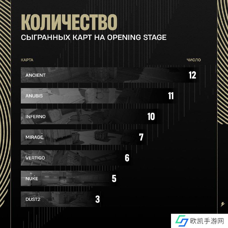 以下为上海Major开幕赛阶段地图出场率排行榜: