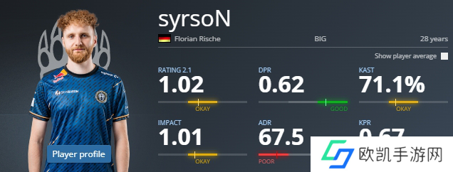 这位28岁的选手曾在2020年1月至2023年8月期间效力于BIG战队,在他第二次为BIG效力期间,其线下赛事平均rating为1.02。