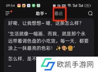 1、首先打开文心一言app,在对话页面点击上方的“最近”。
