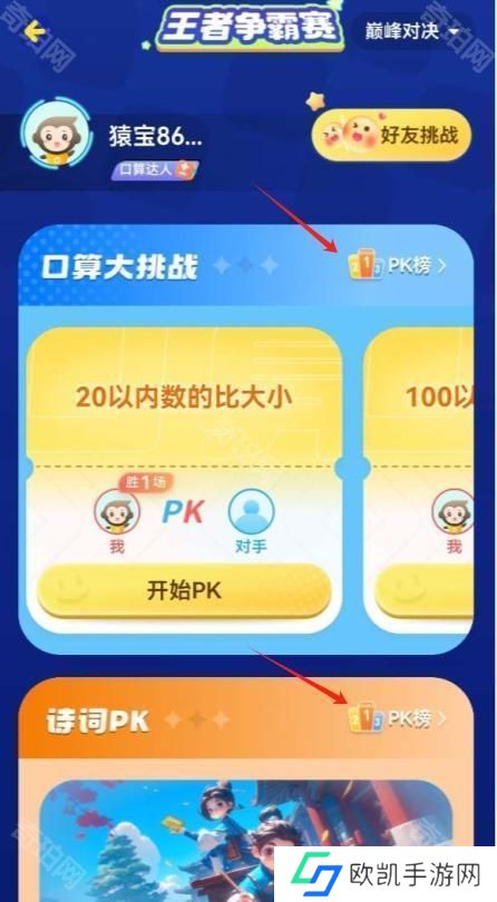 点击首页检查-口算pk-pk榜即可查看。