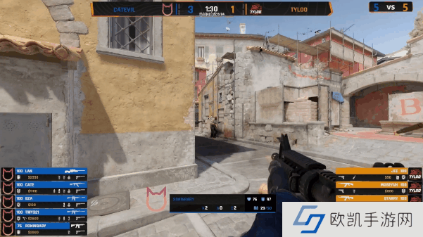 CatEvil选图,CatEvil先做进攻方,手枪局直接提速B区平推TYLOO。次回合TYLOO选择纯e。