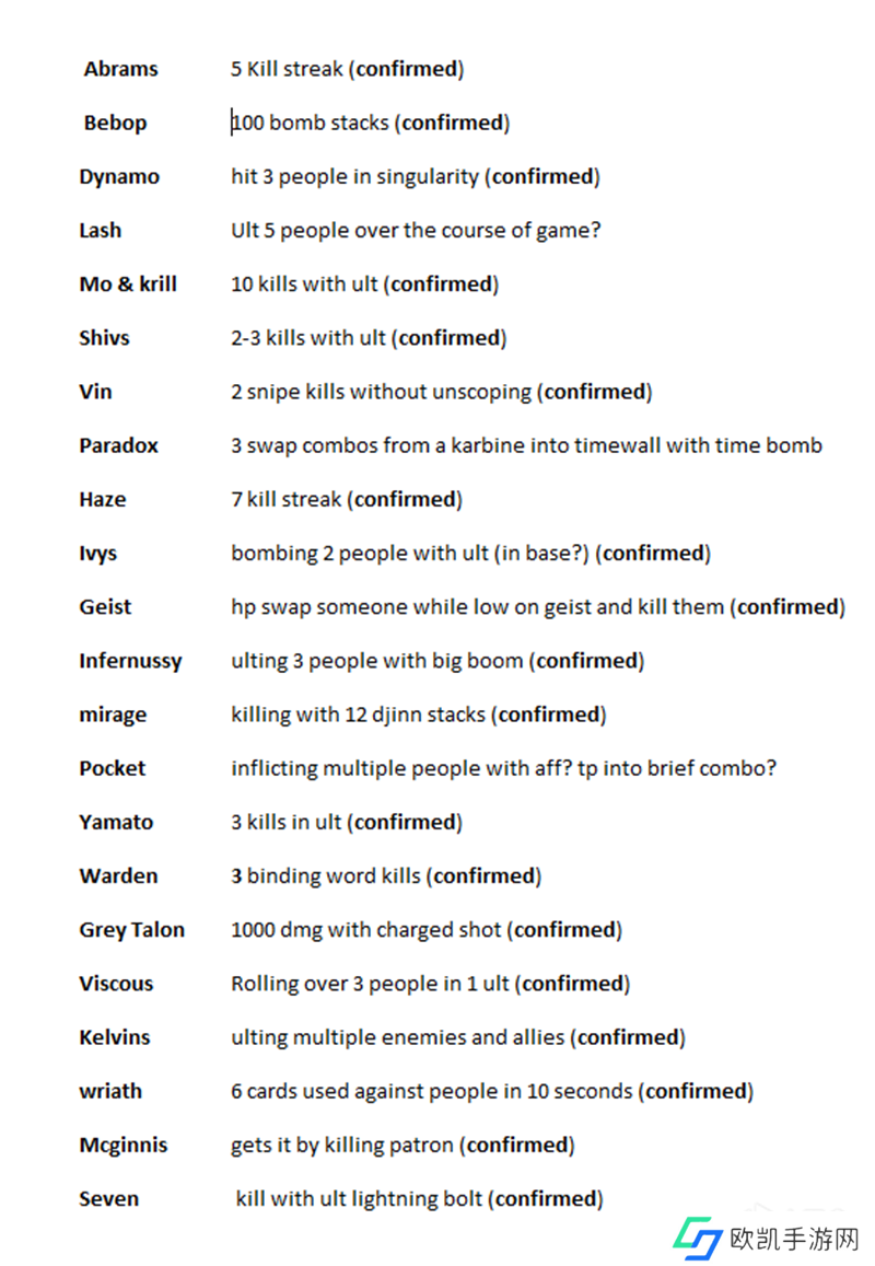 于是,在这讨论之间,一名玩家做了总结表,只有完成这些特殊任务就会立即获得皮肤(是否永久未知)